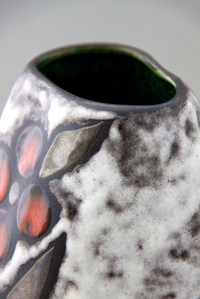 The decor with its foamy dripping white glaze over a grey base is a great example of the ‘Fat Lava’ style of the era, and is typical of ES Keramik’s distinctive style.
